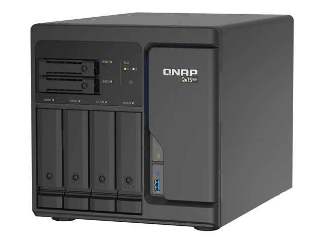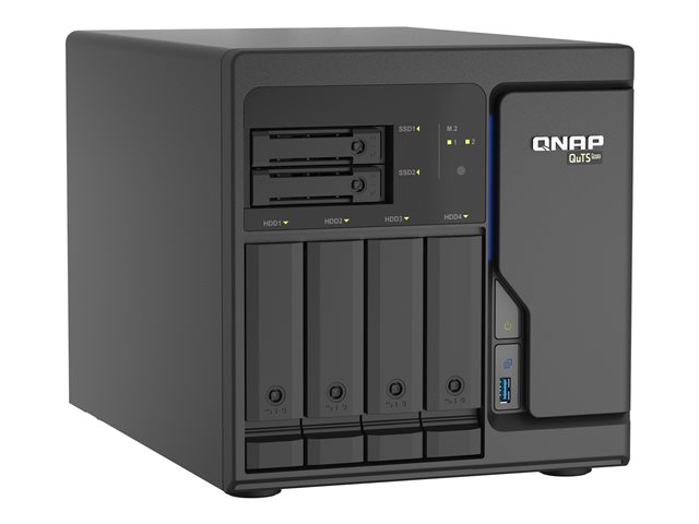Delivering enterprise performance at SMB prices, the TS-h686 features an Intel Xeon D processor and DDR4 ECC (Error Correcting Code) memory (expandable to 128 GB) with dependable reliability. With the ZFS-based QuTS hero operating system, the TS-h686 ensures data integrity and supports block-level inline data deduplication and compression, near-limitless snapshots, and real-time SnapSync. The TS-h686 helps your business achieve reliable service-level agreement performance in various use cases, including mission-critical file servers, virtualization servers, collaborative video editing, or efficient data backup and recovery applications.