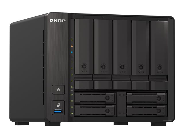 Featuring an AMD Ryzen V1000 series V1500B quad-core processor and 10GbE/2.5GbE connectivity, the 9-bay TS-h973AX packs a high-capacity hybrid storage infrastructure into a compact physical footprint. With five 3.5-inch SATA 6Gbps drive bays, two 2.5-inch U.2 NVMe SSD slots, and two 2.5-inch SATA 6Gbps SSD slots, the TS-h973AX can benefit from SSD caching to boost IOPS-intensive applications. With the ZFS-based QuTS hero operating system, the TS-h973AX ensures data integrity and supports block-level inline data deduplication and compression, near-limitless snapshots, and real-time SnapSync to satisfy mission-critical file servers, virtualization servers, collaborative video editing, and efficient data backup and recovery with business-class performance, job reliability, and lower overall cost.