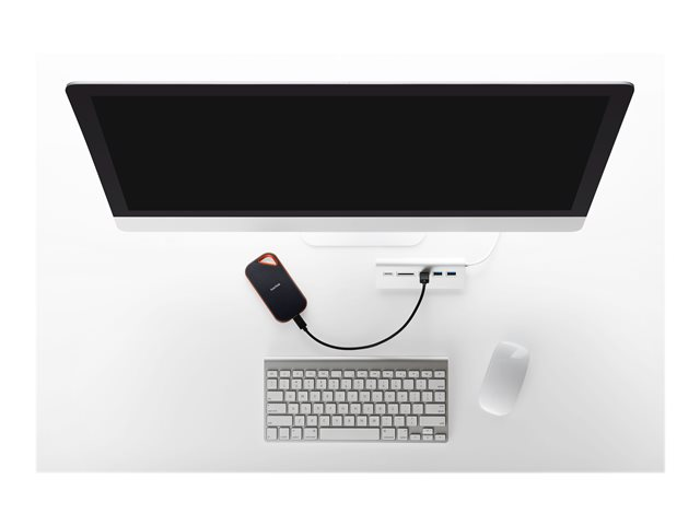 Creating top-tier content can put a strain on your device, your camera or your system. To capture and keep your best work, you need fast, high-capacity storage that's reliable enough to help you consistently overdeliver on your toughest jobs. The SanDisk Extreme PRO Portable SSD is housed in a forged aluminum chassis that also acts as a heatsink, saving you time through higher sustained speeds. A durable silicon shell, up to two-meter drop protection, IP55 water and dust resistance, and a handy carabineer loop for securing the drive give you the peace of mind to take it with you wherever your job - or life - takes you. From the brand trusted by professional photographers worldwide, the SanDisk Extreme PRO Portable SSD provides solid state performance in a rugged, dependable storage solution.