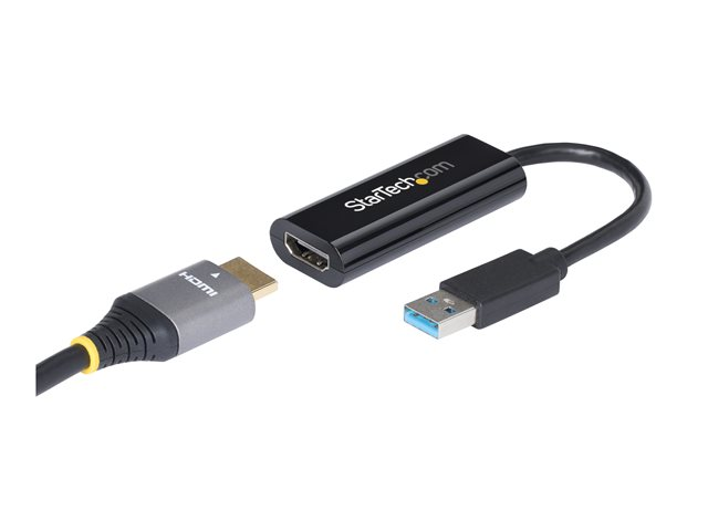 StarTech.com USB 3.0 to HDMI Adapter, 1080p (1920x1200), Slim/Compact USB to HDMI Display Adapter Converter for Monitor, USB Type-A External Video & Graphics Card, Black, Windows Only - USB to HDMI Adapter (USB32HDES) - Adapterkabel - TAA-samsvar - USB-type A hann til HDMI hunn - 19 cm - svart - 1080p-støtte - for P/N: HDDVIMM3, HDMM12, HDMM15, HDMM1MP, HDMM2MP, HDMM3, HDMM3MP, HDMM50A, HDMM6, HDPMM50