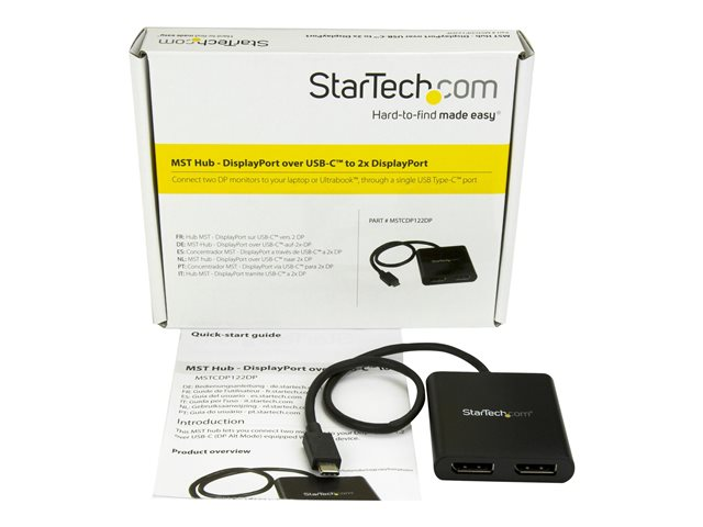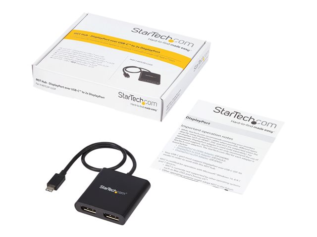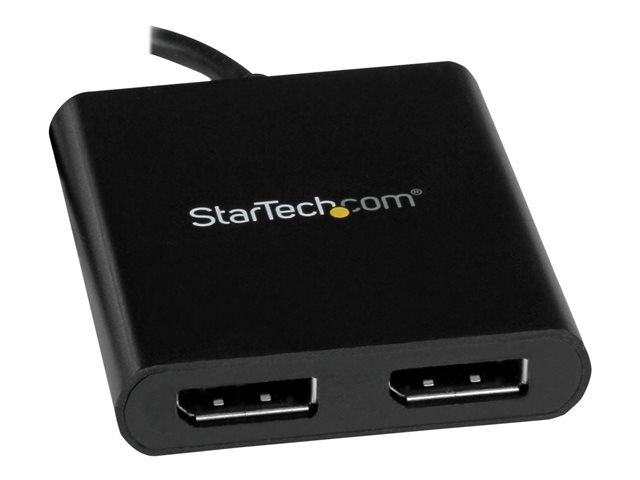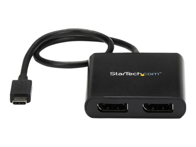 StarTech.com 2-Port Multi Monitor Adapter, USB-C to 2x DisplayPort 1.2 Video Splitter, USB Type-C to DP MST Hub, Dual 4K 30Hz or 1080p 60Hz, Compatible with Thunderbolt 3, Windows Only - Multi Stream Transport (MSTCDP122DP) - DisplayPort-adapter - USB-C (hann) til DisplayPort (hunn) - Displayport 1.2/Thunderbolt 3 - 38.6 m - USB-strøm, 4 K 30 Hz (3840 x 2160) støtte, støtte for 2560 x 1600 (WQXGA) 60 Hz - svart - for P/N: BNDTB10GI, BNDTB210GSFP, BNDTB310GNDP, BNDTB410GSFP, BNDTB4M2E1, BNDTBUSB3142 MSTCDP122DP