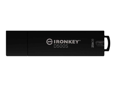The Kingston IronKey D500S USB flash drive combines high-capacity storage, advanced security features, and a durable design to offer a comprehensive data storage solution. With a 256 GB capacity, it caters to significant data storage requirements, while the USB 3.2 Gen 1 interface ensures swift data transfer rates. Security is paramount, with 256-bit AES-XTS encryption, FIPS 140-3 Level 3 certification, and protection against BadUSB attacks, brute-force attempts, and more. Its ruggedized, waterproof, and dustproof design, complemented by a zinc alloy body, makes it suitable for use in any environment. Additionally, features like dual-partition and multi-password options, along with TAA compliance, make it an ideal choice for both personal and professional use, including government and military applications.