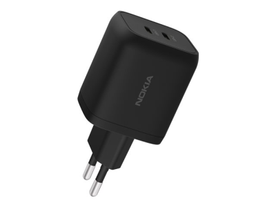 Nokia - Strømadapter - 65 watt - 2 utgangskontakter (24 pin USB-C) - svart - Den europeiske union 8P00000273