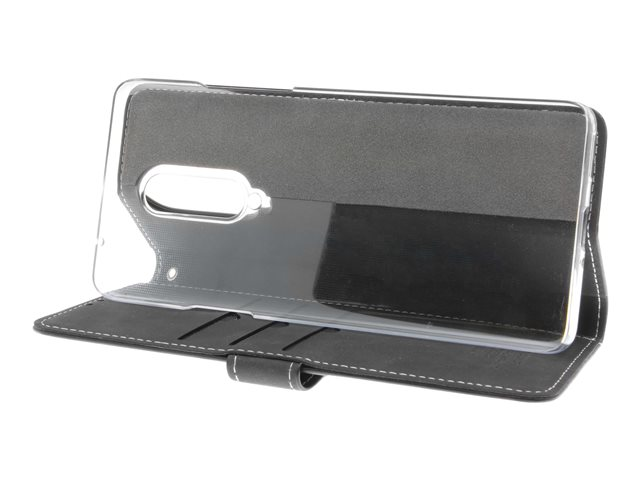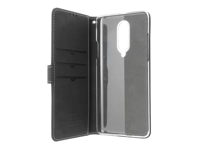 Insmat Exclusive Flip Case - Lommebok for mobiltelefon - ekte skinn, papir, kartong, polykarbonat, aluminiumsfolie - svart - for OnePlus 8