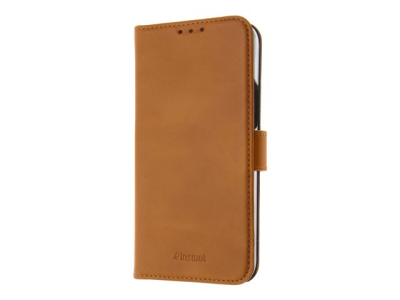 Insmat Exclusive Flip Case - Lommebok for mobiltelefon - ekte skinn, polykarbonat, bomullssting, kartong+papir - brun - for Apple iPhone 14 Pro
