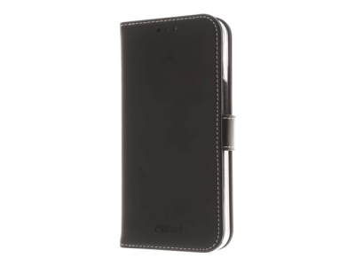 Insmat Exclusive - Lommebok for mobiltelefon - ekte skinn, polykarbonat, bomullssting, kartong+papir - svart - for Apple iPhone 14 Plus