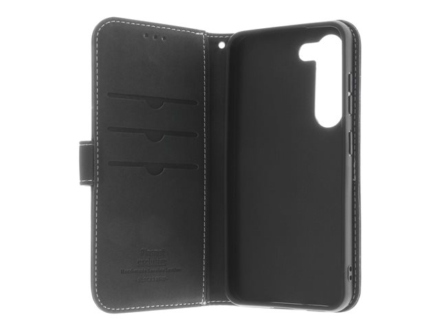 Insmat Exclusive - Lommebok for mobiltelefon - ekte skinn, papir, polyuretan, kartong, bomull, aluminiumsfolie, bronse, termoplast-polyuretan (TPU) - svart - for Samsung Galaxy S23