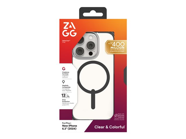 Zagg Santa Cruz Snap - Baksidedeksel for mobiltelefon - MagSafe-samsvar - grafen - gjennomsiktig, svart - for Apple iPhone 16 Pro