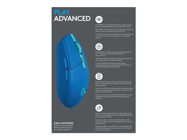 Logitech G G305 - Mus - optisk - 6 knapper - trådløs - 2.4 GHz - USB trådløs mottaker - blå