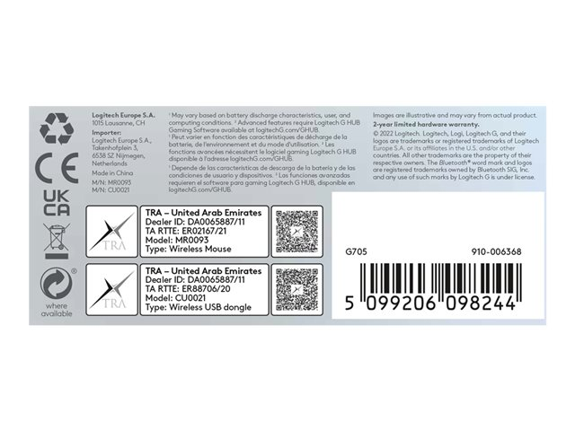 Logitech G G705 - Mus - små hender - 6 knapper - trådløs - Bluetooth - USB Logitech LIGHTSPEED-mottaker - hvit 910-006367