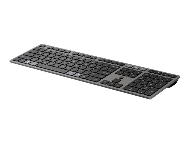 HP 725 - Tastatur - multi-enhet, oppladbar, drevet av SuperCapacitor - full size - trådløs - Bluetooth, 2.4 GHz - QWERTY - Pan Nordic - kveldningssvart 9T5B2AA#UUW