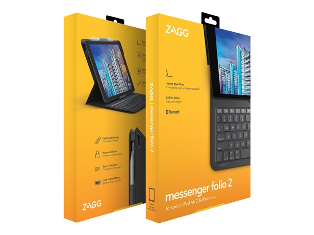 ZAGG Messenger Folio 2 - Tastatur og folioveske - Bluetooth - Nordisk - koksgrå tastatur, koksgrå boks - for Apple 10.2-inch iPad; 10.5-inch iPad Air (3. generasjon) 103007177