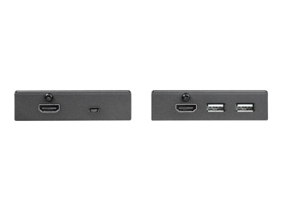 Extend 1080p video and four USB peripheral devices to a remote location. This HDMI extender kit lets you transmit your 1080p HD video source to your remote HDMI display at distance of up to 165 ft. away (50 m) using shielded CAT6 cabling. The extender features a built-in 4-port USB 2.0 hub that also lets you connect four remote USB peripheral devices at your display location.
