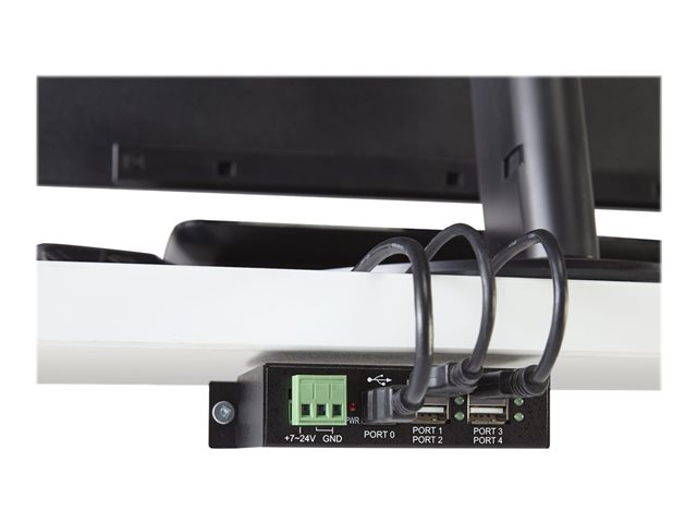 This industrial USB hub delivers reliable performance with a metal, heavy-duty housing. It supports wide-range 7-24V DC terminal block input, giving you the flexibility to power the hub as required, based on your own power input capabilities.