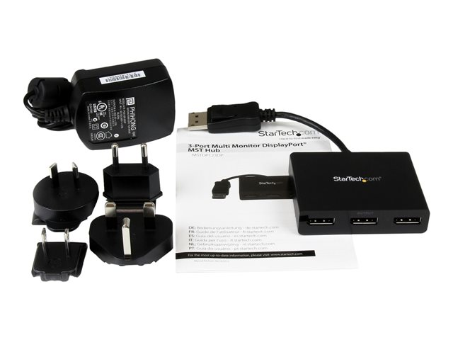 StarTech.com 3-Port Multi Monitor Adapter, DisplayPort 1.2 MST Hub, Dual 4K 30Hz & 1x 1080p, Video Splitter for Extended Desktop Mode on Windows PCs Only, DP to 3x DP Monitors MST Hub - Multi Stream Transport (MSTDP123DP) - Videosplitter - stasjonær - AC 100/230 V - for P/N: SV231DPU34K, SVA5N3NEUA MSTDP123DP