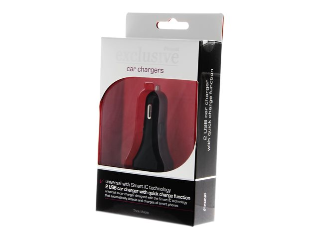 Insmat SPIRAL Series Dual - Bilstrømadapter - 30 watt - 3 A - QC 3.0 - 2 utgangskontakter (USB) - svart