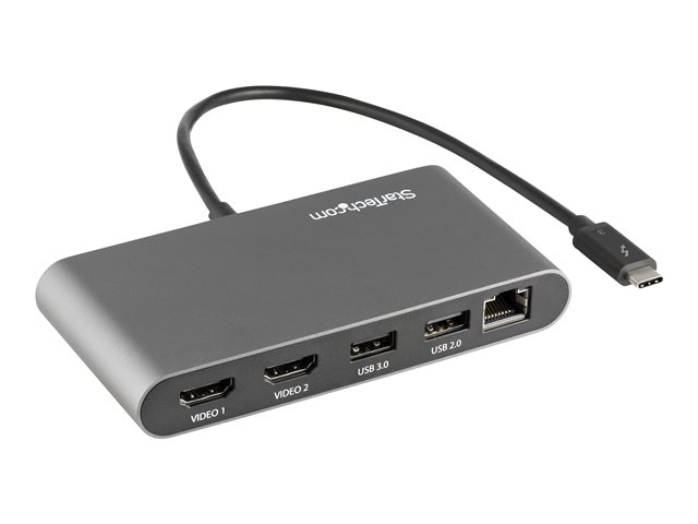 StarTech.com Thunderbolt 3 Mini Dock - Portable Dual Monitor w/HDMI 4K 60Hz - 2X USB-A Hub (3.2/2.0), GbE - 28cm Cable - TB3 Multiport Adapter - Mac/Windows - Upgraded Version of TB3DKM2HD (TB3DKMHDL) - Dokkingstasjon - Thunderbolt 3 - 2 x HDMI - 1GbE