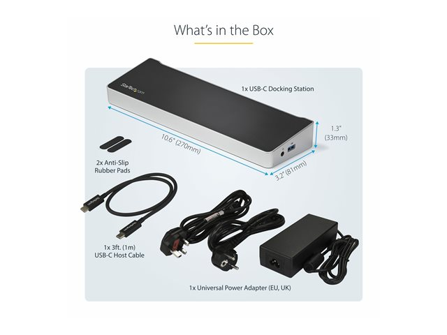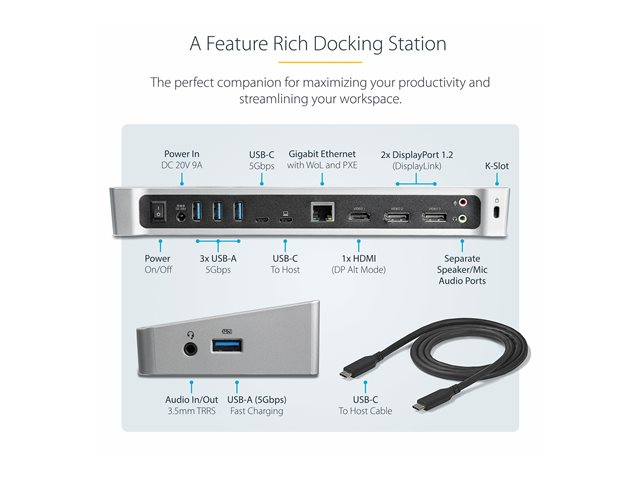 StarTech.com USB-C Dock, 4K Triple Monitor USB Type-C Docking Station with Dual DisplayPort & HDMI, 100W Power Delivery + Charging, USB 3.0/3.1 Gen 1 Hub (1x USB-C + 4x USB-A) w/ Ethernet - 100W PD Laptop Dock (DK30CH2DEPUE) - Dokkingstasjon - USB-C - HDMI, DP - 1GbE - 100 watt - TAA-samsvar