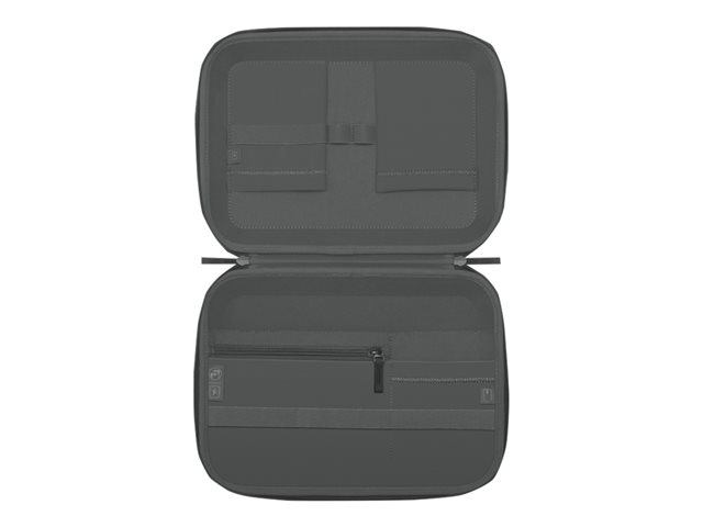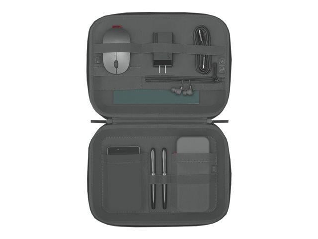 Lenovo Go Tech Accessories Organizer er en unik bæreveske for flere enheter. Inne i det kompakte, moderne eksteriøret finner du plass til alt du trenger av tilbehør som smarttelefon, notatblokk, penner, ørepropper, mus og mer, noe som gjør det enkelt å beskytte og transportere det du trenger.