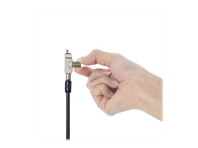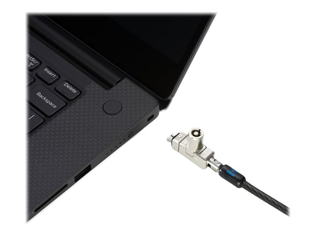 The Slim N17 2.0 Keyed Dual Head Laptop Lock for Wedge-Shaped Slots lets you lock two devices with a single solution, won't block valuable ports, and allows the laptop to lie flat and stable. Secondary T-bar lock head secures peripheral accessories featuring the industry-standard Kensington Security Slot. Meets or exceeds rigorous strength testing standards. Features an omnidirectional pivoting head and rotating anchor, 5mm keying system. Master keyed provides administrative access, so the IT manager can have a key for all locks while each user has their own individual lock and key.